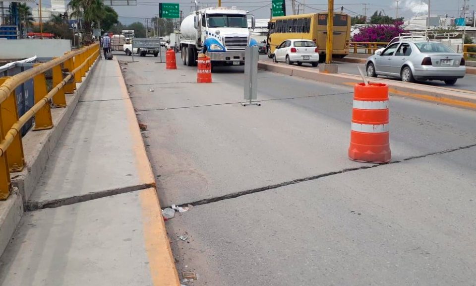 Autos particulares y vehículos pesados, así como de transporte público, diario transitan por el punte de San Felipe, con el peligro de que en cualquier momento pueda colapsar, esto, debido a que desde hace ya varias semanas, presenta cuarteaduras en su estructura.