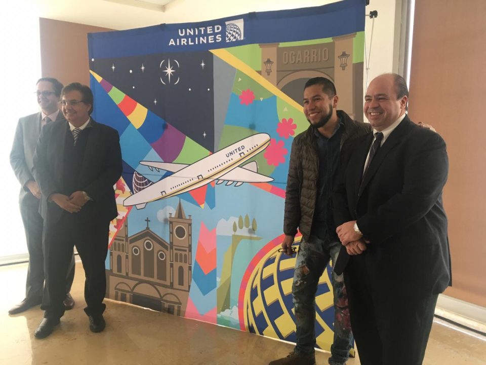 A la par, United Airlines presentó el mural de 126 metros que pinto el potosino Hervey García, este trabajo artístico se ubica en cordillera de los Alpes en Villas del Pedregal; en el se plasman las riquezas culturales y naturales del estado. Rolaf Meyer,director de United Airlines México detalló que a partir del 19 de diciembre comenzarán a operar los dos nuevos equipos Embraer 175 que cuenta con 12 asientos en primera clase, 16 asientos en clase económica con cuatro filas y 48 asientos en clase económica normal, siendo en total 76 asientos en comparación de los 50 lugares con los queda venías operando.