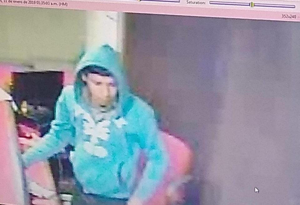 En las grabaciones de observa a una persona del tipo masculino con sudadera azul complexión delgada apróximo de unos 20 a 23 años de edad.
