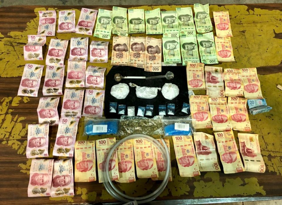 Al ver la acción, los presuntos manifestaron a los efectivos encontrarse inhalando estupefacientes, sin embargo al realizarle una revisión de rutina a la fémina se le encontró entre sus ropas tres envoltorios con narcótico conocido como cristal, bolsas pequeñas de plástico color azul vacías, hierba seca color verde con las propiedades de la marihuana, así como la cantidad de 6 mil 220 pesos en efectivo.