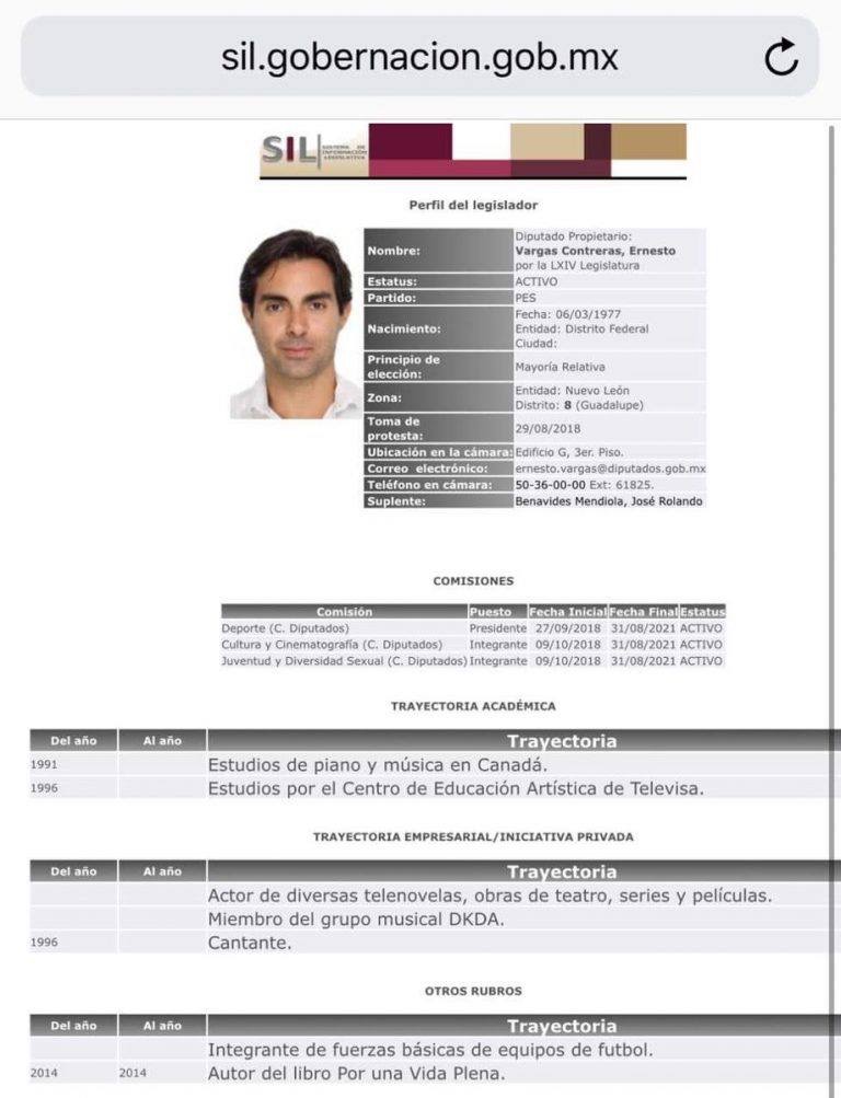 Como experiencia profesional señaló que se ha desempeñado como actor en telenovelas, series y películas, también es cantante y formó parte del grupo musical DKDA. Esto desató cientos de comentarios y burlas en Twitter.