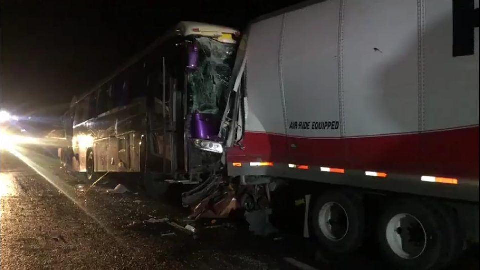 Carambola de trailers, Vehículo Renault quedó prensado entre un trailer y un autobús se habla de seis personas sin vida en su interior.