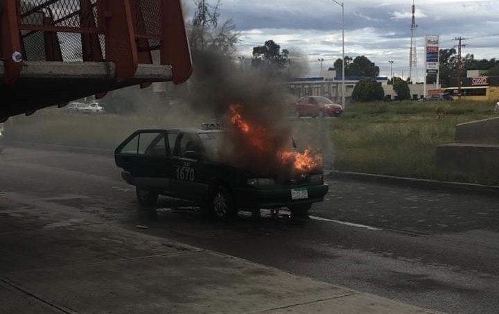 El taxi con número económico 1670 ardió en llamas la tarde de este lunes frente a la Central TTP.