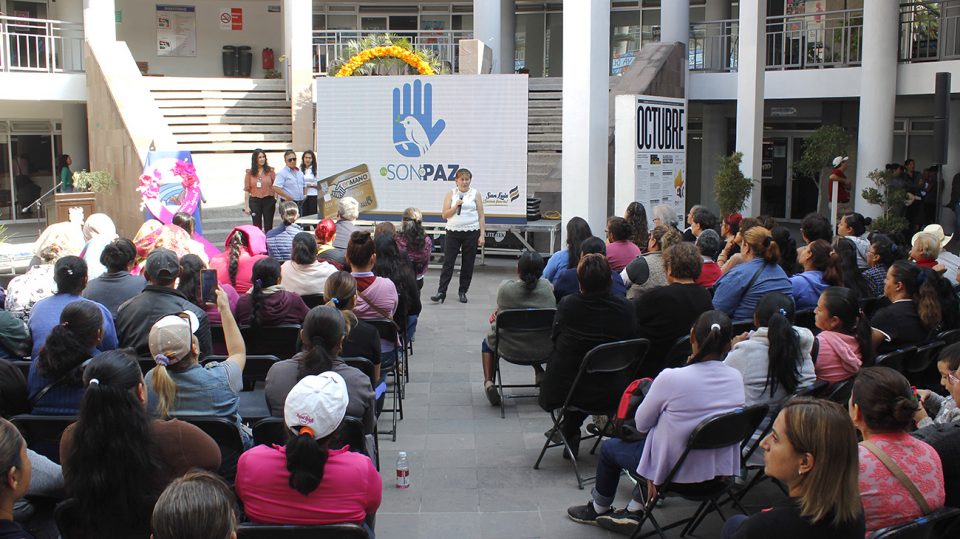 Con este acto concluyó la cruzada que estuvo dedicada a la sensibilización del cáncer de mama, en donde las usuarias de los servicios elaboraron un enorme lazo rosa que es distintivo de la campaña.