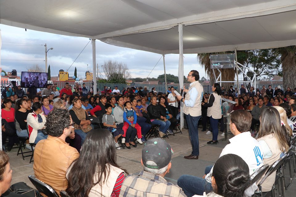 Fueron más de 430 beneficiarios del programa “En Son de Paz”, quienes recibieron los apoyos a estudiantes niñas, niños, adolescentes, jefas y jefes de familia, así como adultos mayores de la capital; el evento tuvo lugar en la colonia Tercera Chica y con ello se cumple la entrega número 26 de este programa.