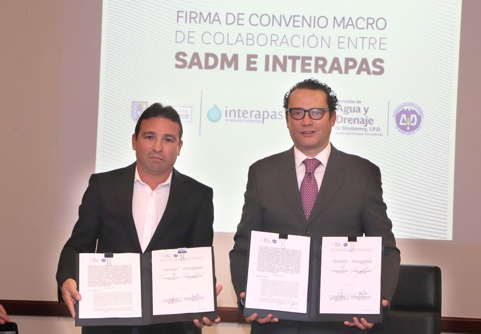Señaló el Alcalde de la Capital, Xavier Nava Palacios, en la firma de colaboración entre el Sistema de Agua y Drenaje de Monterrey –SADM-, y el INTERAPAS.