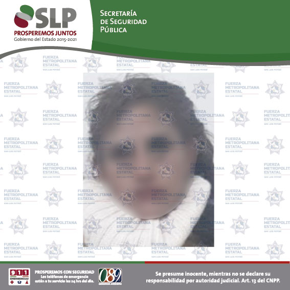SAN LUIS POTOSÍ, SLP.- En el marco de la atención a las llamadas de auxilio recibidas en la Línea de Emergencia 9-1-1, Policías Metropolitanos llevaron a cabo la detención de una mujer de 38 años, por el presunto delito de ataque peligroso, en la Zona Centro de la capital.