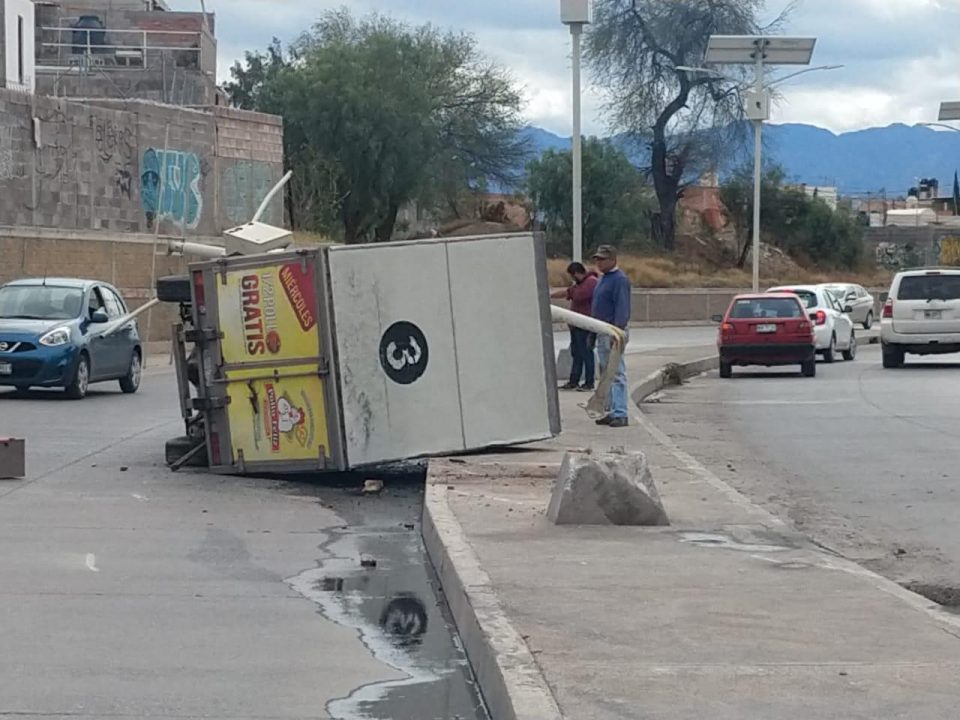 El conductor identificado como Fernando de 22 años de edad, pierde el control cuando circulaba a una velocidad aproximada a 80 kilómetros por hora, refiere el mismo que la unidad perteneciente a la empresa “El Pollo Feliz”, no estaba en óptimas condiciones mecánicas.
