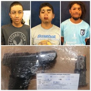 Derivado de los hechos, fueron asegurados Joel N., Luis N. y Erick N., de 23, 20 y 22 años de edad, éste último señalado presuntamente como portador del arma de fuego.