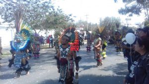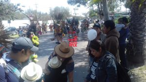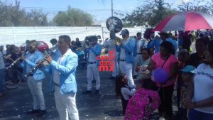 Al salir completamente del templo, el Señor del Saucito inició una procesión por calles aledañas, acompañado por creyentes, mariachis y cientos de comparsas, en su mayoría integrada por miembros que portaban penachos y máscaras.