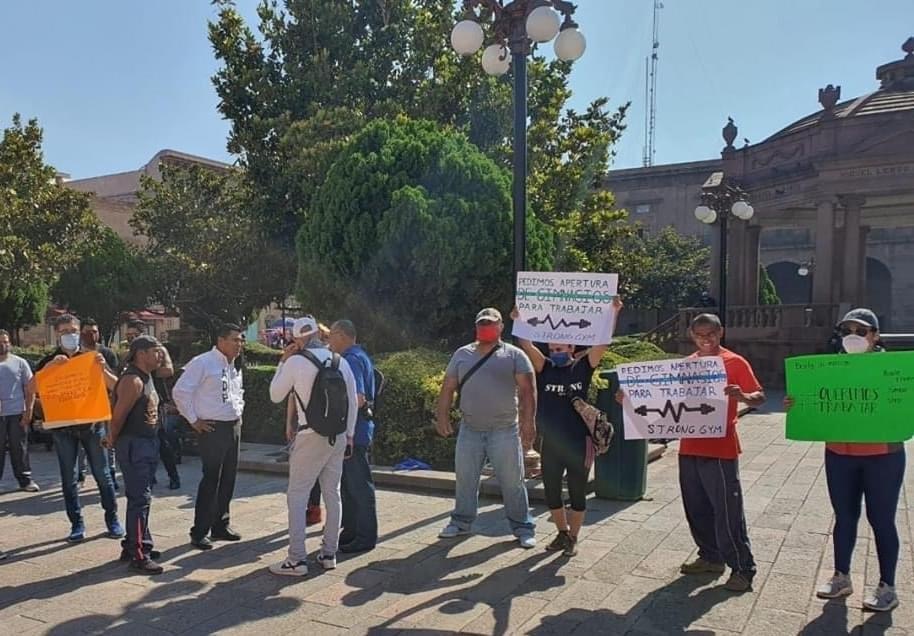 Trabajadores y Duelos de Gimnasios en San Luis Potosí, se manifestaron en plaza de Armas, para exigir que ya los dejen laborar, pues afirmaron que hay más de 350 gimnasios y trabajadores afectados.