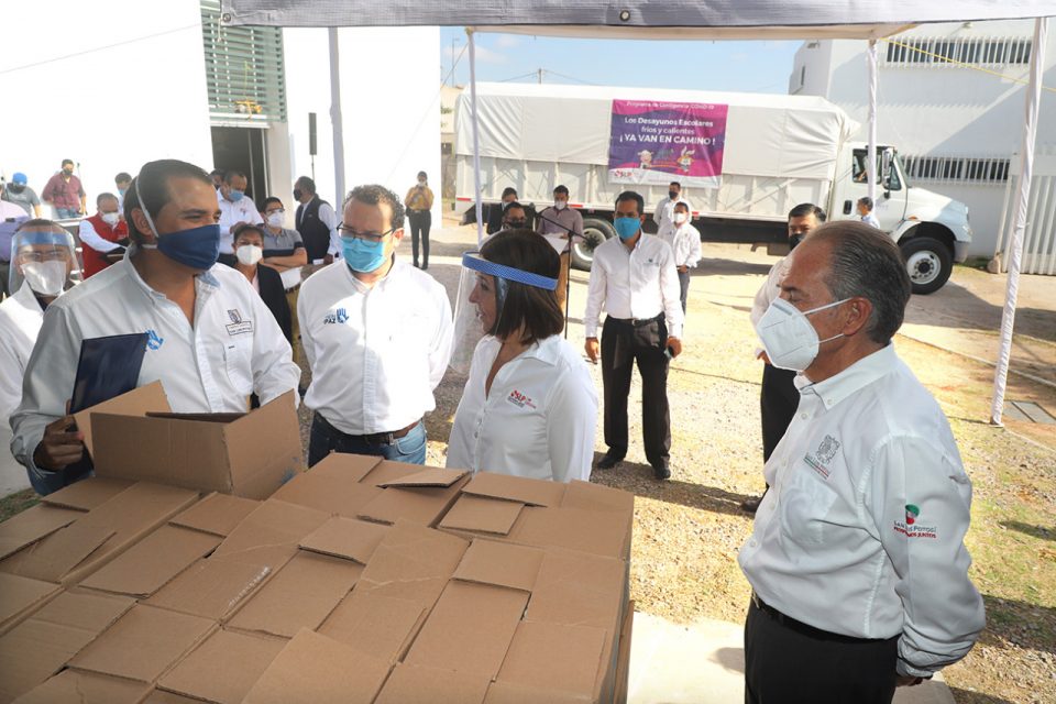 Al dar el banderazo de salida de la entrega de apoyos alimentarios de la Canasta Básica “Desayunos Escolares” en esta capital, el Presidente Municipal, Xavier Nava Palacios y el Gobernador del Estado, Juan Manuel Carreras López coincidieron en la trascendencia de apoyar a la niñez potosina para que tengan acceso a una alimentación sana y suficiente, por lo que gracias al trabajo institucional se distribuirán 28 mil desayunos escolares en beneficio de niñas, niños y adolescentes de entre 3 y 15 años.