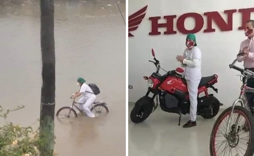 HONDA REGALA MOTO A ENFERMERA QUE ATRAVESÓ INUNDACIONES PARA LUCHAR CONTRA EL COVID19