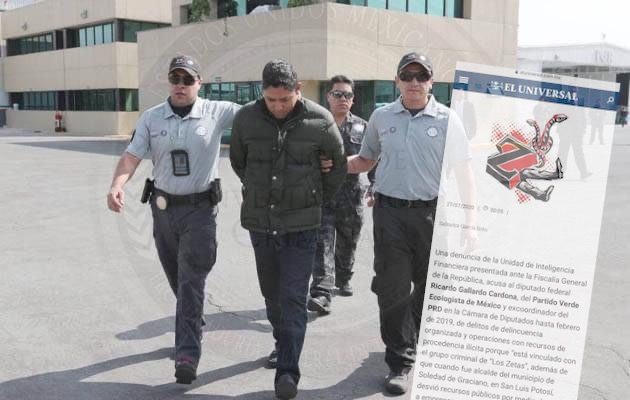 Garcia Soto, señala que la denuncia de la Unidad de Inteligencia Financiera (UIF) presentada ante la Fiscalía General de la República, acusa al diputado federal Ricardo Gallardo Cardona, del Partido Verde Ecologista de México y ex coordinador del PRD en la cámara de diputados hasta febrero de 2019, de delitos de delincuencia organizada y operaciones con recursos de procedencia ilícita porque “está vinculado con el grupo criminal de “Los Zetas”, además de que cuando fue alcalde del municipio de Soledad de Graciano Sánchez, en San Luis Potosí desvío recursos públicos por medio de pagos a empresas con las que están vinculados él y su familia como Grupo Axioma Kusuri e Investigaciones Médicas del Potosí, entre otras, a través de las cuales él y su familia también realizan actividades de lavado de dinero al mismo tiempo que les otorgan contratos públicos.