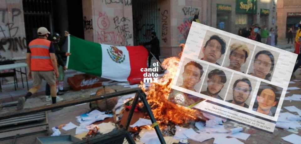 SLP. La Fiscalía General del Estado de San Luis Potosí (FGESLP) capturó a siete personas, presuntamente relacionadas con diversos hechos delictivos ocurridos el pasado 5 de junio de 2020, en donde se ocasionaron daños en primer cuadro la ciudad Capital.