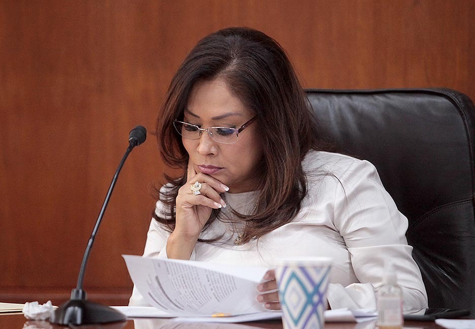 Asimismo se tomó el acuerdo de analizar y votar el dictamen en comisiones unidas de Justicia y Gobernación, relacionado a la resolución emitida por el Primer Tribunal Colegiado en materia civil y administrativa del Noveno Circuito a favor de la licenciada Adriana Monter Guerrero, quien se inconformó por no ser evaluada para el proceso de elección de magistrados supernumerarios del Poder Judicial del Estado.