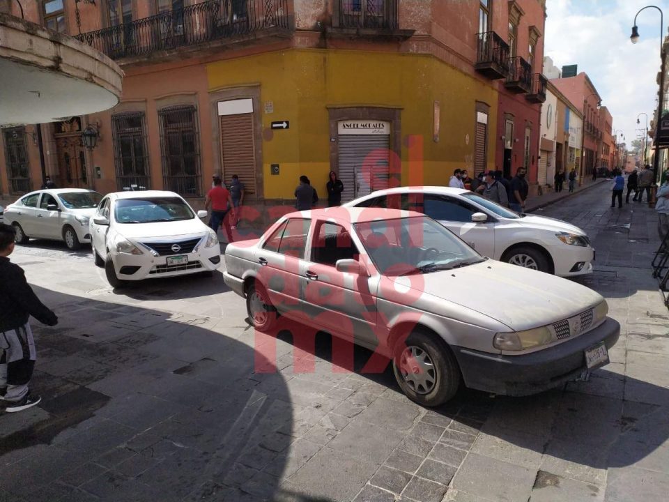 San Luis Potosí.,SLP a 1 de diciembre 2020.- Diferentes grupos de taxistas tanto de la capital potosina como foráneos,se plantaron este día en las calles del centro histórico Pascual M. Hernández y cinco de mayo,esto con el objetivo de visibilizar la negativa del Gobierno del Estado de otorgarle los permisos correspondientes para poder laborar.