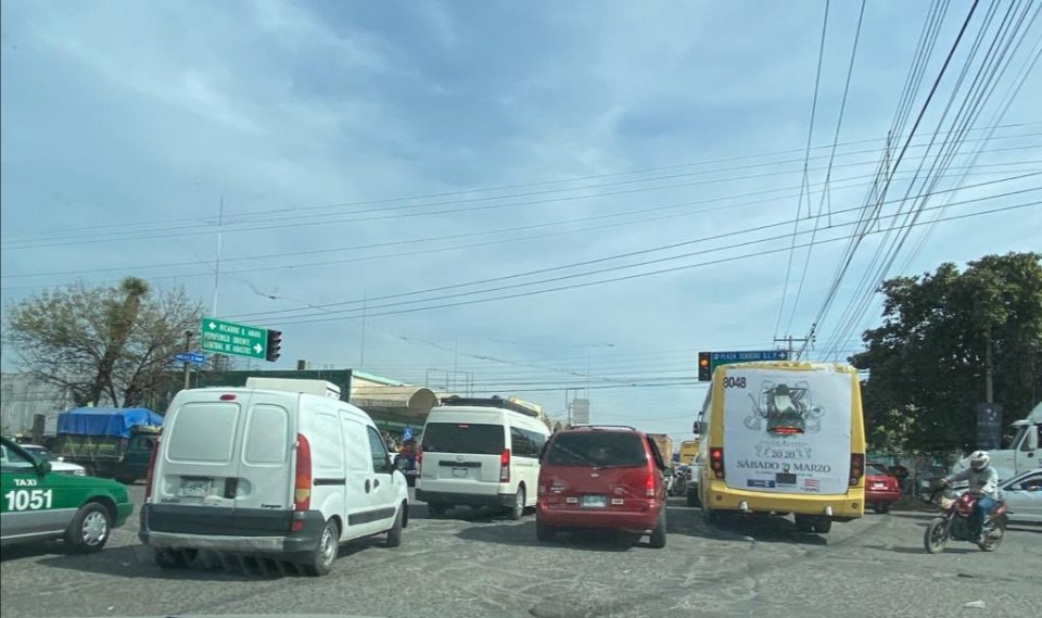 Las principales arterias de acceso para este punto de venta de frutas, verduras y abarrotes desde temprana hora registran una importante carga vehicular.