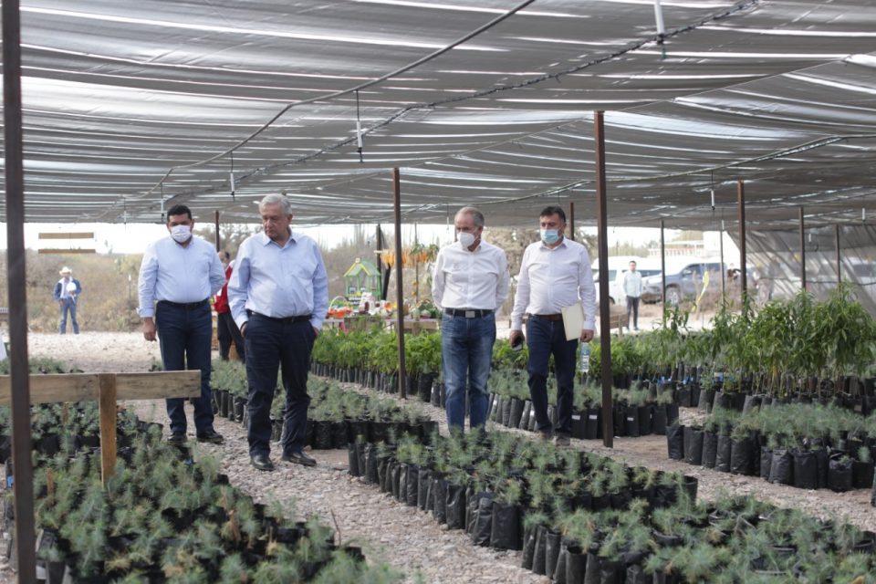Moctezuma S.L.P.- En gira de trabajo por San Luis Potosí, el Presidente de México, Andrés Manuel López Obrador y el Gobernador de San Luis Potosí, Juan Manuel Carreras López, supervisaron el programa Sembrado Vidas que está enfocado en reforestar más de 50 mil hectáreas que permitirán reactivar la economía de familias potosinas y preservar el medio ambiente.