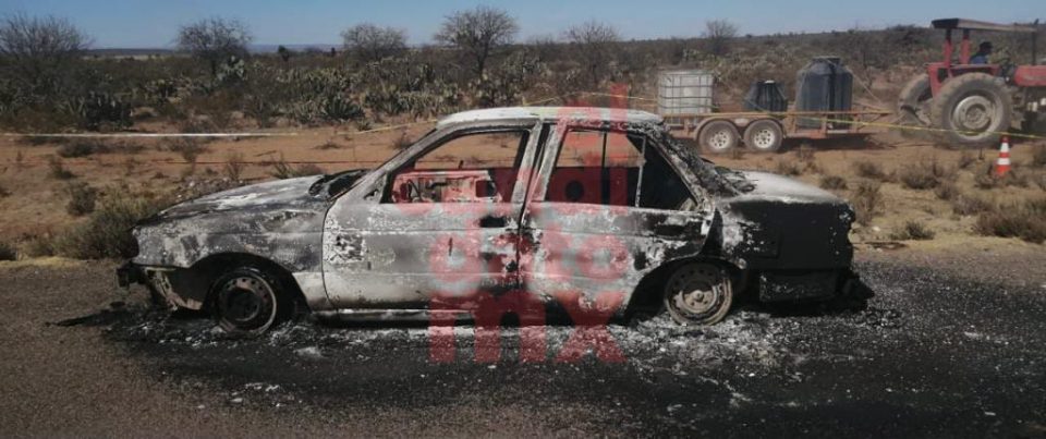 Fue encontrado dentro de un Tsuru blanco una persona sin vida y calcinado en el interior de carro en la carretera que conduce a Villa de Ramos.