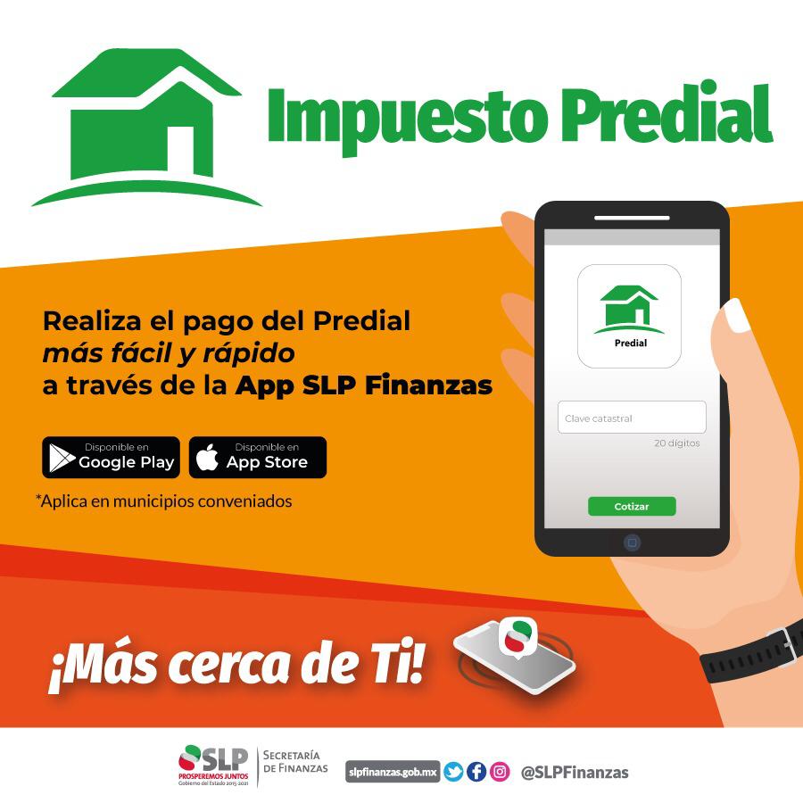 Para realizar el pago hay que descargar la aplicación SLP Finanzas en el aparato celular o Tablet, registrar un correo electrónico, seleccionar el botón de predial, capturar la clave catastral, cotizar, seleccionar método de pago, ejecutar el pago y descargar el recibo oficial. Así mismo se puede solicitar por esta vía la cotización para pago en sucursal bancaria.