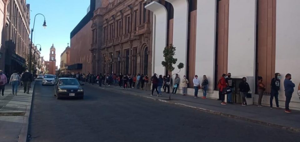 Desde temprana hora de este lunes 25 de enero, primer día de semáforo rojo en San Luis Potosí, potosinos abarrotaron instituciones bancarias en la zona metropolitana y centro histórico de la ciudad.