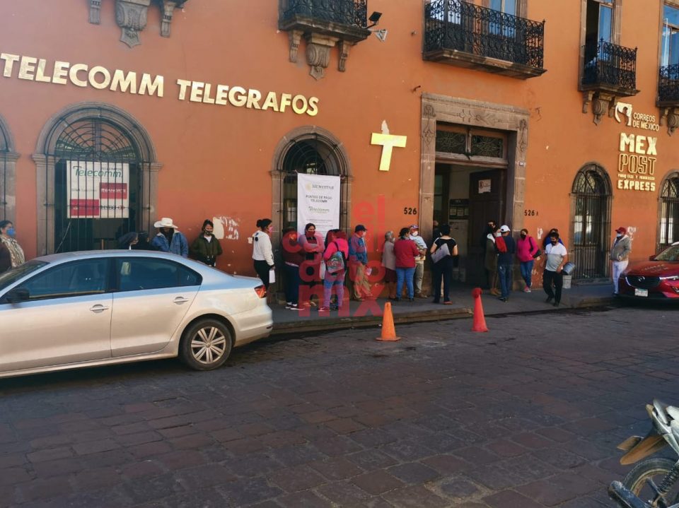 San Luis Potosí, SLP.- A diario largas filas de principalmente personas de la tercera edad, se perciben a las afueras de la empresa Telecomm-Telégrafos. Los adultos mayores van en busca de cobrar su pensión otorgada por el Gobierno federal, sin embargo al ser considerados como personas de alto riesgo en esta pandemia de COVID-19 y aunado a los pocos protocolos sanitarios que exige la empresa de telecomunicaciones, los abuelitos se exponen a un contagio.