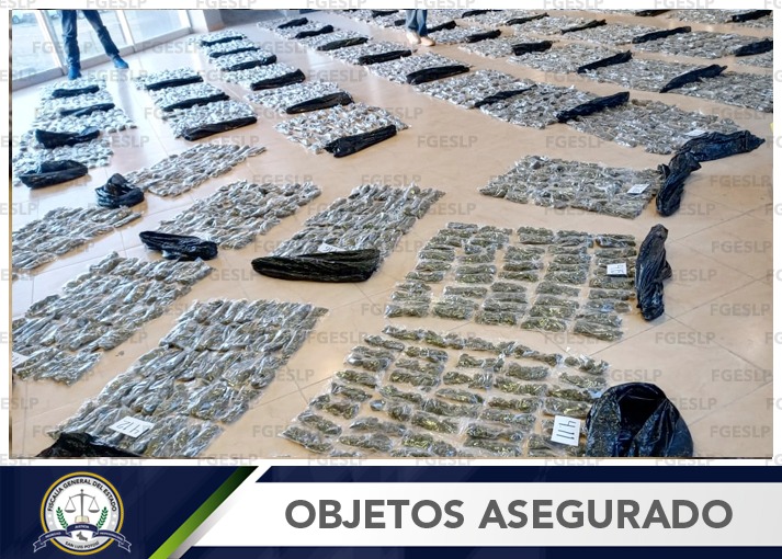 CIUDAD FERNÁNDEZ. – La Fiscalía General del Estado de San Luis Potosí (FGESLP) logró el aseguramiento de 3 mil 649 envoltorios de droga y garrafas de una sustancia que se analiza para saber su constitución química, en un domicilio de Ciudad Fernández.