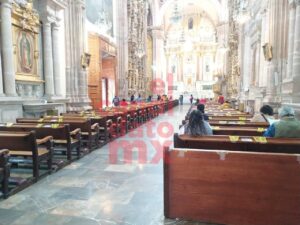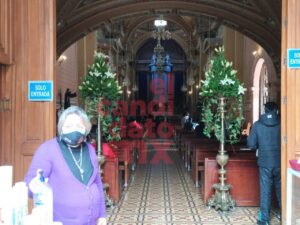 Dentro de los templos se toman las medidas cautelares y preventivas recomendadas por la Secretaría de salud para evitar la propagación del virus Covid 19; sin embargo no hay control para el ingreso de los fieles.