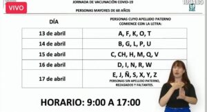 Mañana podrán acudir a vacunarse de 9:00 a 17:00 horas, las personas de más de 60 años, cuyo apellido paterno inicie con las letras A,F,K,O y T, el día 14 las letras B,G,L,P y U, el día 15 la C,CH, H, M ,Q y V. El día 16 acudirán los que lleven la letra D, I, N R y W como inicial en su apellido paterno. Y concluyen con E J, Ñ, S, X, Y y Z.