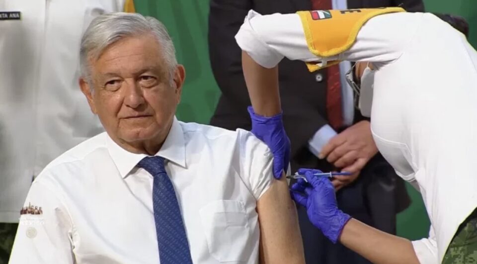El presidente de México, Andrés Manuel López Obrador recibió este martes su primera dosis de la vacuna contra el COVID-19 en Palacio Nacional.