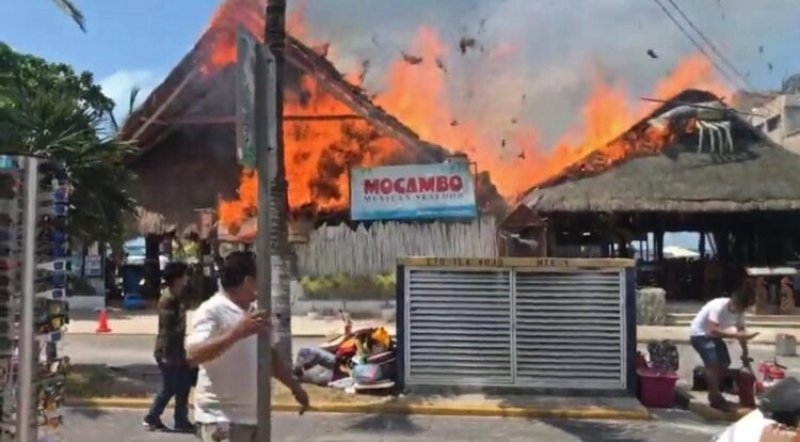 México.- La mañana de hoy 26 de abril de 2021 un incendio consumió un restaurante en Isla Mujeres, en Quintana Roo, y afectó otros locales.