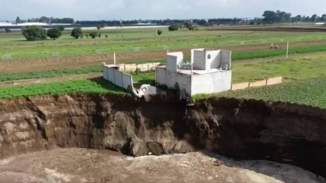 El socavón que apareció el 30 de mayo en medio de los campos de cultivo de la comunidad de Santa María Zacatepec y que ha aumentado su tamaño desde entonces, ya comenzó a “tragarse” la casa que está en el lugar.