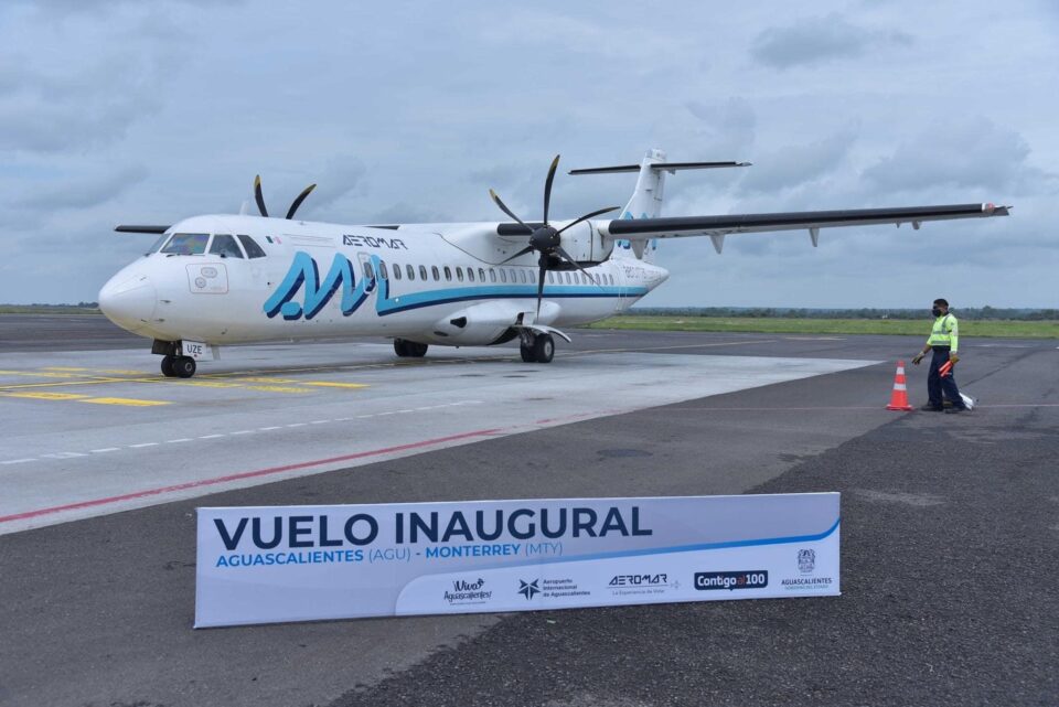 Aguascalientes.- Con el vuelo inaugural McAllen-Monterrey-Aguascalientes, la aerolínea AEROMAR, inició este martes operaciones en la entidad, incrementando la conectividad y ampliando la oferta aérea, con 6 nuevas frecuencias semanales a destinos además de los mencionados, a Puerto Vallarta.