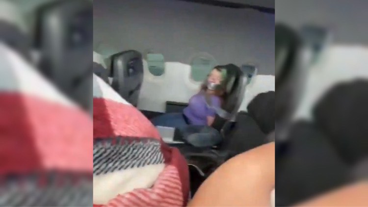 En los clips publicados en la plataforma TikTok, se observa a la pasajera con cinta adhesiva plateada sobre la boca, brazos y cuerpo para inmovilizarla en su asiento.