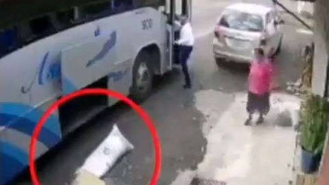 Sin embargo, al notar que el costal de semillas estaba pesado, el chofer simplemente lo jaló con fuerza y lo dejó caer al pavimento, lo que ocasionó que se regara parte de su contenido.