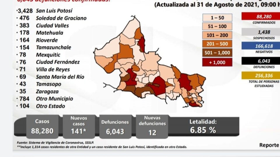 Fernando Hernández Maldonado informo que durante las últimas 24 horas se registraron 141 casos de covid-19 y 12 decesos por la enfermedad.