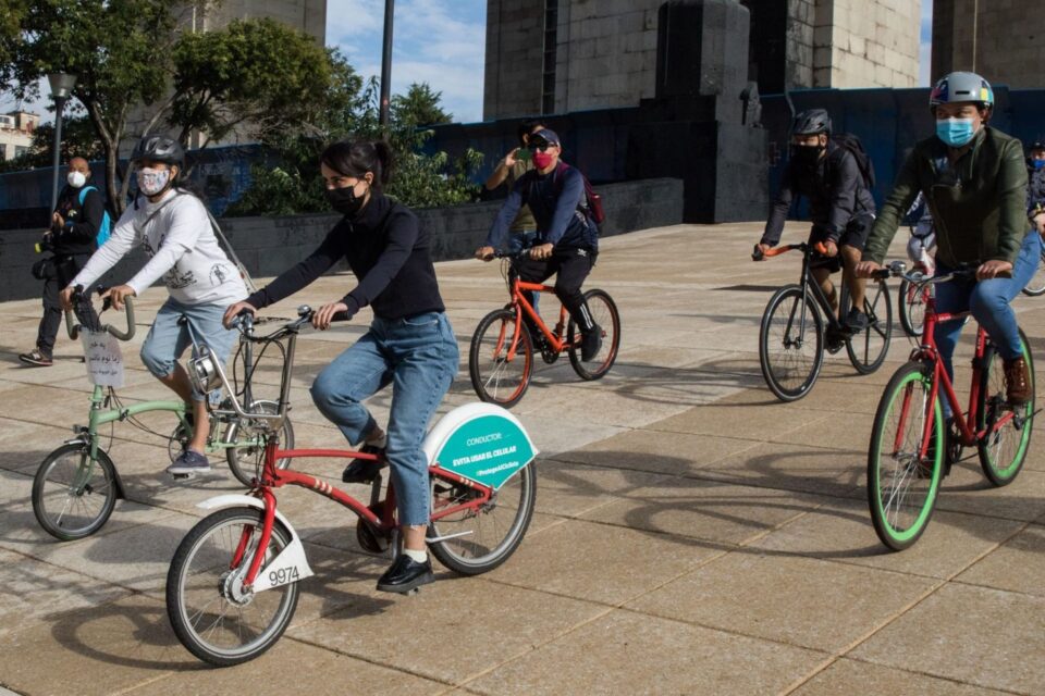 Tras recibir un breve homenaje, tres de las jóvenes subieron a las bicis y avanzaron hasta el emblemático Ángel de la Independencia. Su otra compañera hizo el recorrido el bicitaxi, un servicio de transporte informal que se presta en triciclos.