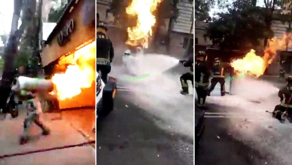 “Un tanque de gas se prende y este heroico bombero lo carga para sacarlo del negocio y evitar riesgos mayores. Mi reconocimiento para todos los valientes bomberos qué arriesgan su vida por los demás“, escribió una usuaria.