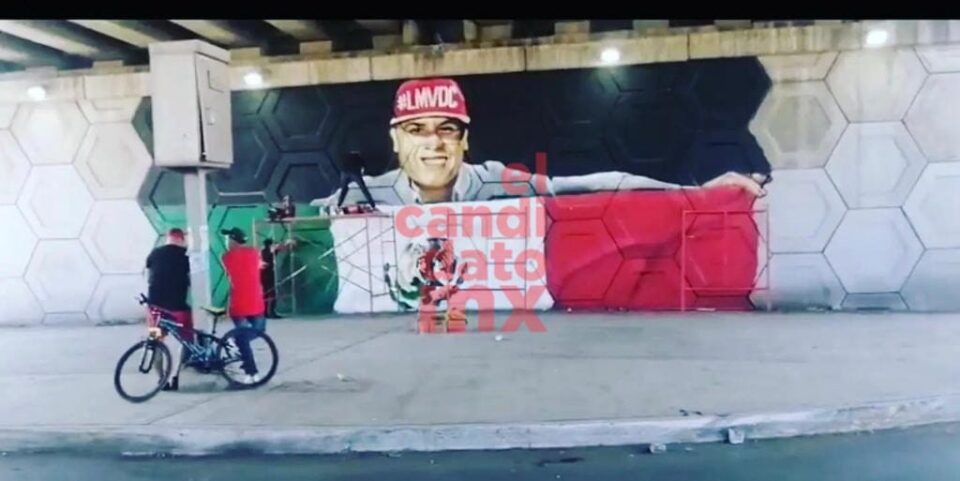 La tarde de este miércoles 20 de octubre la experta en grafiti inició la pinta que culminó con la bandera de México sobre la que colocó el rostro del afamado sonidero Juan Manuel Quistian también conocido como “Tontín”.