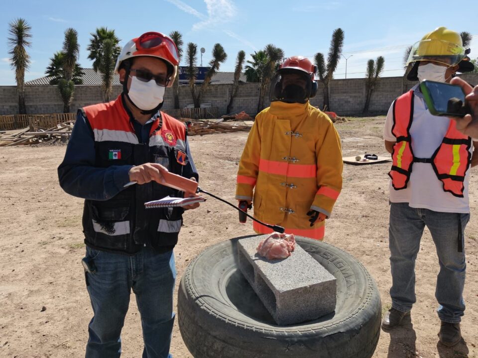 – El director municipal, Enrique Torres participó con el coordinador estatal de Protección Civil en exhibición de riesgos por uso de este material.