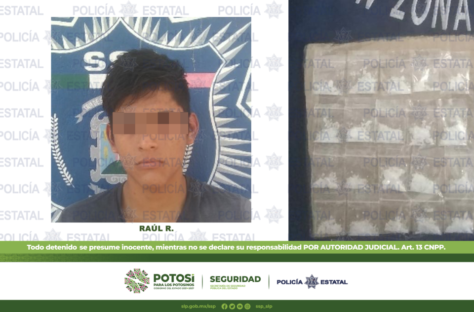 Uno de los hechos fue sobre carretera estatal al ejido Estación 500, donde los agentes Estatales pusieron a disposición a Raúl R., de 18 años de edad, a quien presuntamente le aseguraron 20 dosis de “cristal”.
