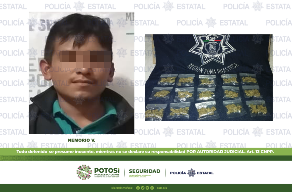 Al revisar la bolsa, los Policías localizaron 15 bolsitas con marihuana, por tal motivo Nemorio V., de 25 años de edad, fue detenido.