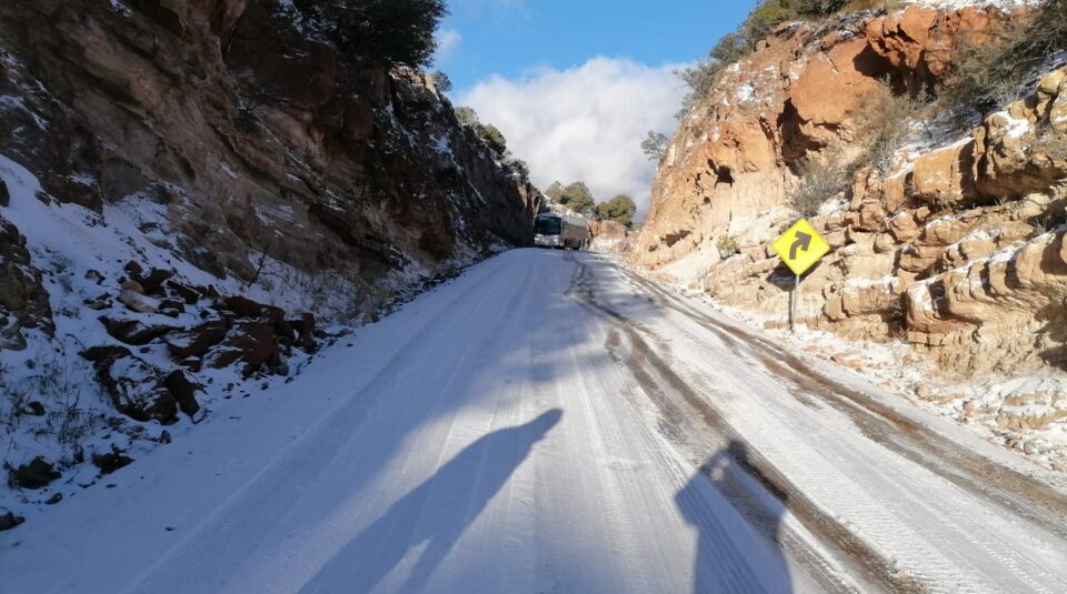SE REGISTRÓ CAÍDA DE NIEVE EN VARIOS MUNICIPIOS DE CHIHUAHUA, OCASIONANDO CIERRES DE CARRETERAS