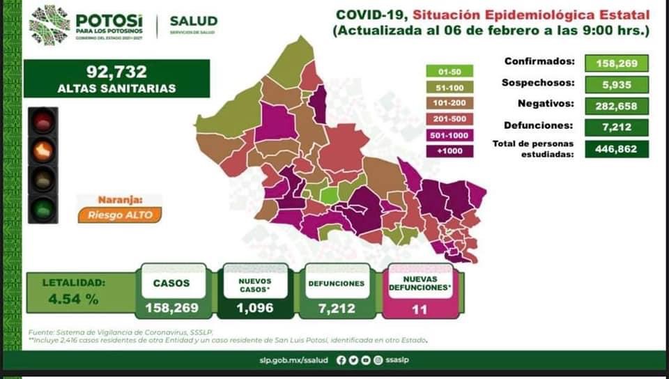 Se dan a conocer 1 mil 096 nuevos contagios confirmados en la Entidad. De esta forma, el Comité Estatal para la Seguridad en Salud y los Servicios de Salud informan que hasta este día se registran 158 mil 269 casos totales de este padecimiento.