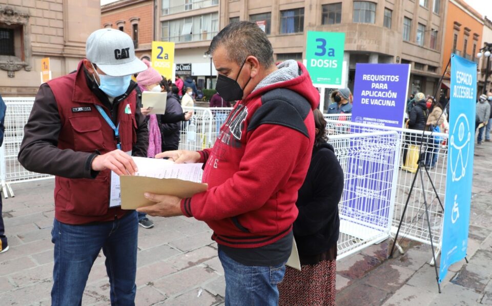 Se instaló un puesto de vacunación covid en el primer cuadro de la ciudad, que se mantendrá los días 8 y 9 de febrero en la Plaza de Armas: Jardín Hidalgo s/n, Centro Histórico, frente al Palacio Municipal, de 9 de la mañana a 5 de la tarde.