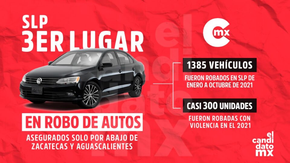 Desde el año pasado, solo Zacatecas y Aguascalientes han superado a San Luis Potosí en la estadística de robo de autos asegurados según la Asociación Mexicana de Instituciones de Seguros (AMIS), por lo que la entidad se coloca en el tercer puesto en este rubro con un alza del 16%.