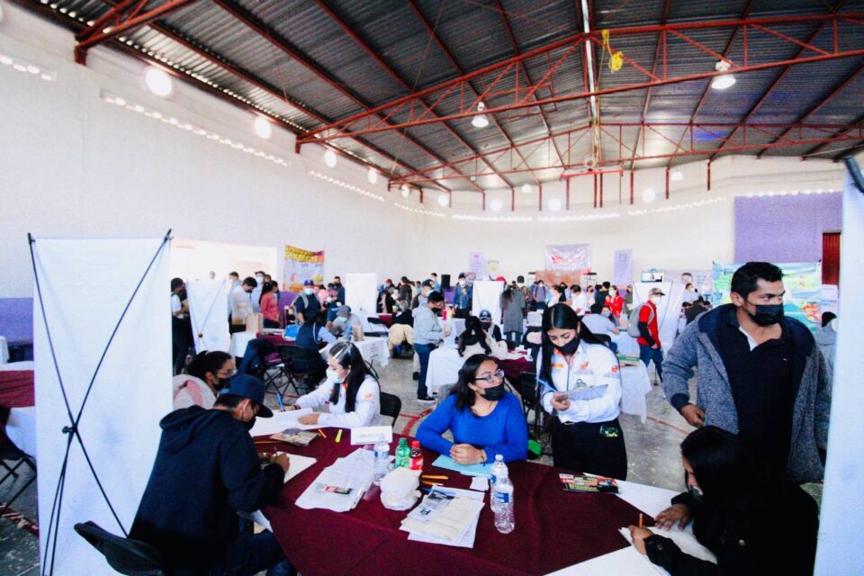 Bajo los protocolos sanitarios, en Villa de Reyes se llevó a cabo la Primera Feria del Empleo 2022, con la participación de 40 empresas que ofertaron 4 mil vacantes desde operarios, supervisores, asistentes, ensambladores, montacarguistas, operadores de transporte de carga, entre otros.