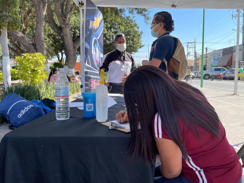Soledad de Graciano Sánchez; SLP.- Este lunes se instaló un módulo de reclutamiento de la empresa General Motors en la Plaza Principal de Soledad de Graciano Sánchez, esto con la intención de cubrir las vacantes que actualmente tiene la compañía y ofertar oportunidades de empleo para las y los soledenses.