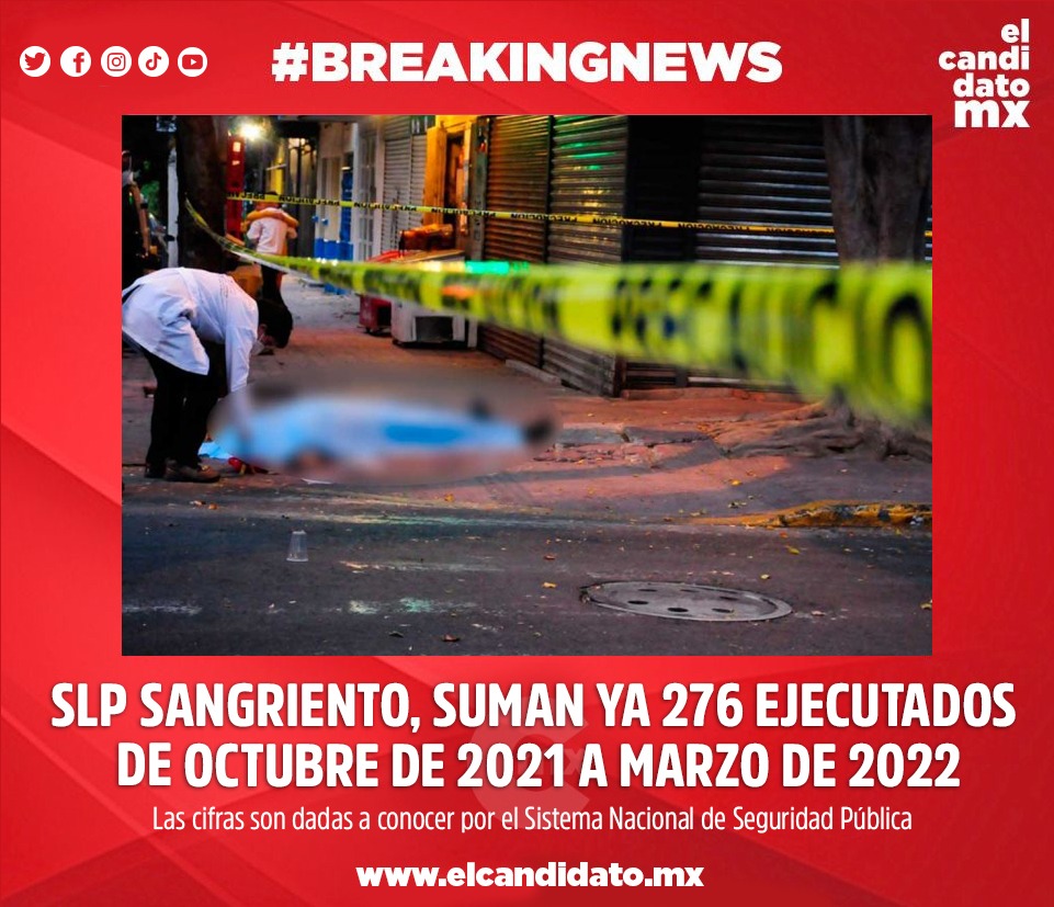 SLP SANGRIENTO, SUMAN YA 276 EJECUTADOS DE OCTUBRE DE 2021 A MARZO DE 2022